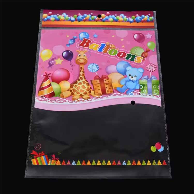 బెలూన్ ప్యాకేజింగ్ బ్యాగులు సాధారణంగా సిపిపి (కాస్ట్ పాలీప్రొఫైలిన్) పదార్థంతో తయారు చేయబడతాయి. సిపిపి ఫిల్మ్ మంచి వశ్యత మరియు కోల్డ్ రెసిస్టెన్స్ కలిగి ఉన్నందున, బెలూన్ సంచులను తయారు చేయడానికి ఇది చాలా అనుకూలంగా ఉంటుంది. అదే సమయంలో, సిపిపి పదార్థం యొక్క పారదర్శకత మరియు నిగనిగలాడేవి కూడా చాలా ఎక్కువగా ఉన్నాయి, ఇది బెలూన్ల రంగు మరియు నమూనాను బాగా చూపిస్తుంది. అదనంగా, సిపిపి పదార్థాలు మంచి ప్లాస్టిసిటీని కలిగి ఉంటాయి మరియు ముద్రించడం, సమ్మేళనం మరియు ప్రక్రియను సులభం, ఇవి బెలూన్ సంచుల యొక్క వివిధ అవసరాలను తీర్చగలవు.