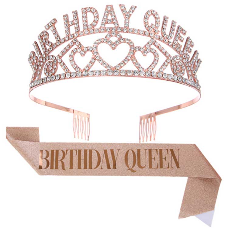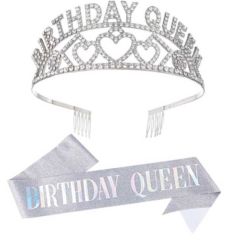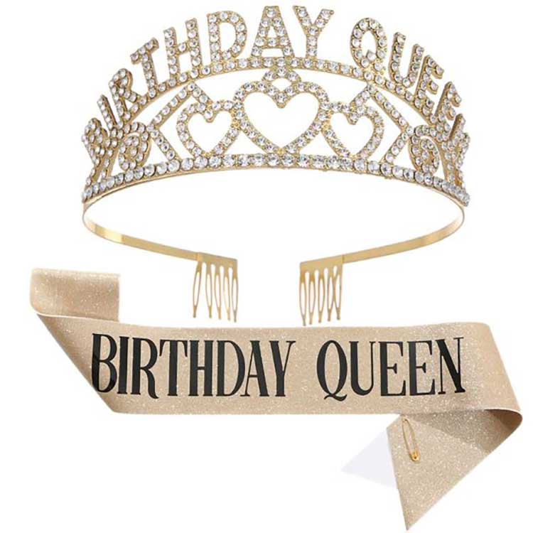 బర్త్డే క్వీన్ క్రౌన్ అనేది భుజం పట్టీతో సెట్గా వచ్చే హెడ్పీస్. కిరీటం యొక్క ప్రధాన భాగం అల్లాయ్తో తయారు చేయబడింది, ఇది ఫేడ్ లేదా డ్యామేజ్ కాకుండా చూసుకుంటుంది. మేము వజ్రాలను అల్లాయ్ ఫ్రేమ్కి భద్రపరచడానికి ఒక పొదుగు సాంకేతికతను ఉపయోగించాము, అవి సులభంగా పడిపోకుండా నిరోధించాము. ఈ ఖచ్చితమైన ఉత్పత్తి నాణ్యత మీరు భవిష్యత్తులో పుట్టినరోజు ఈవెంట్లలో దీన్ని ఉపయోగించడం కొనసాగించవచ్చని హామీ ఇస్తుంది.