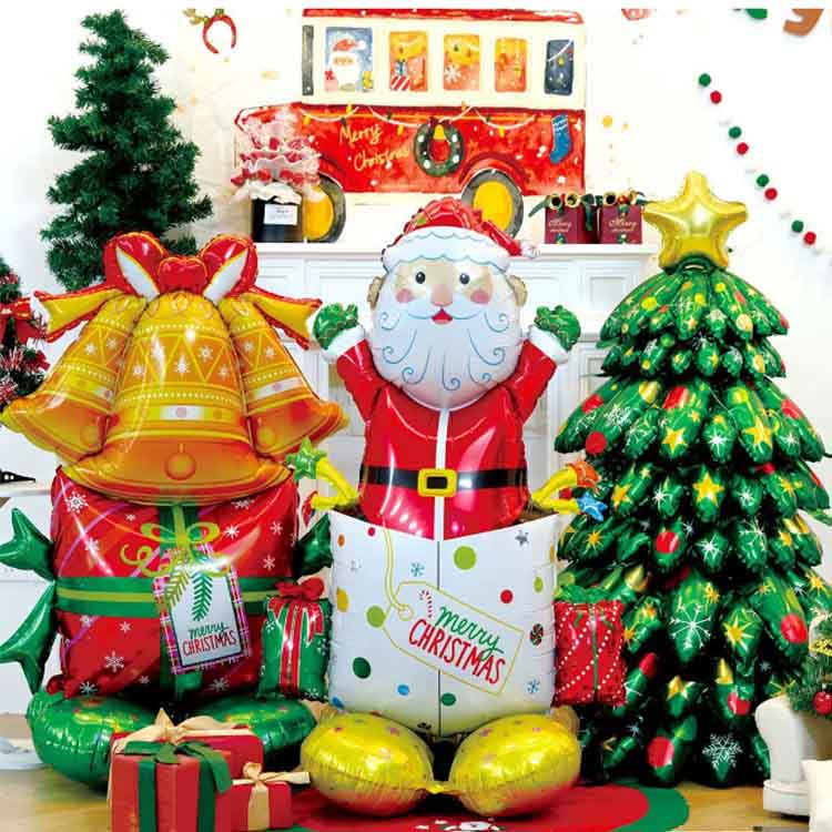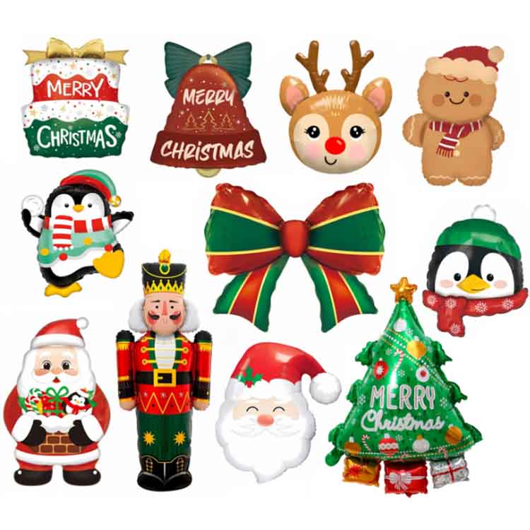 క్రిస్మస్ అల్యూమినియం ఫాయిల్ బెలూన్లు వాటి డిజైన్లలో క్రిస్మస్ అంశాలను పొందుపరుస్తాయి. శాంతా క్లాజ్, క్రిస్మస్ ట్రీలు, స్నోఫ్లేక్స్ మరియు బెల్స్ వంటి క్లాసిక్ ఆకృతులలో అందుబాటులో ఉన్న ఈ బెలూన్లు "మెర్రీ క్రిస్మస్" నినాదాలతో అలంకరించబడి ఉంటాయి. రంగులు క్రిస్మస్ మూలకాలను కలిగి ఉంటాయి, ప్రధానంగా ఎరుపు, ఆకుపచ్చ, బంగారం మరియు వెండి వంటి క్రిస్మస్ నేపథ్య రంగులను కలిగి ఉంటాయి, ఇది పండుగ వాతావరణాన్ని సృష్టిస్తుంది. మినీ 30cm నుండి పెద్ద 100cm వరకు పరిమాణాల విస్తృత శ్రేణిలో అందుబాటులో ఉంటాయి, ఇవి వివిధ రకాల అలంకార దృశ్యాలు మరియు అవసరాలను తీరుస్తాయి.