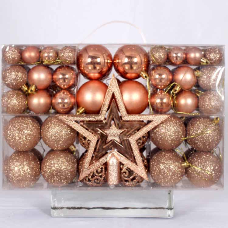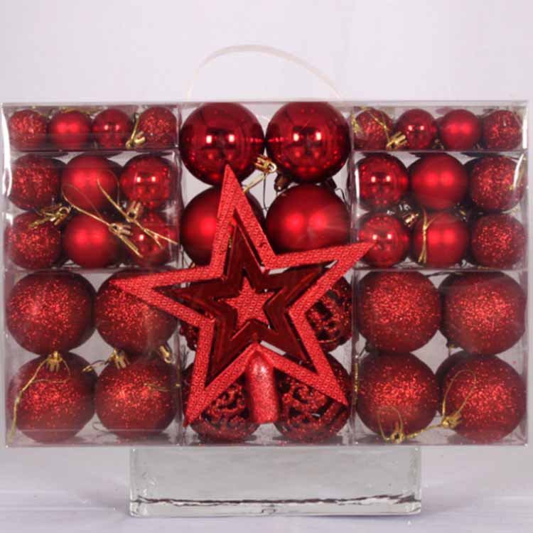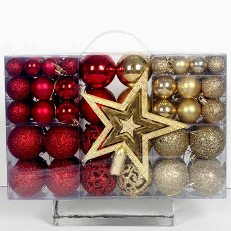 క్రిస్మస్ చెట్టు అలంకరణలు ఆభరణం బంతులు 101 విభిన్న అలంకరణ ఉపకరణాలతో కూడి ఉంటాయి. ఇది వివిధ పరిమాణాలు మరియు రంగుల అలంకరణ బంతులను కలిగి ఉంటుంది. ఇది పిల్లల ఉత్సాహాన్ని పూర్తిగా ప్రేరేపించడానికి, వారి ఊహను పెంపొందించడానికి మరియు DIY అలంకరణలను రూపొందించడంలో మీకు సహాయపడుతుంది, తద్వారా కుటుంబం చిరస్మరణీయమైన క్రిస్మస్ను కలిగి ఉంటుంది. వంగి ఉండకూడదు మరియు దాని ఆకారం ప్రభావితం కాదు. ఇది ప్రతిదీ మరింత అందంగా మరియు సరళంగా మారుతుంది.