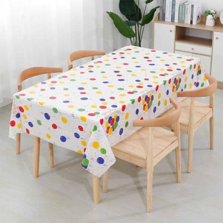 నమూనా శైలులు: పుట్టినరోజులు మరియు సెలవుల నిర్దిష్ట అవసరాలను తీర్చడానికి, మేము చారలు, పోల్కా డాట్లు, పుష్పాలు మరియు కార్టూన్లతో సహా అనేక రకాల డిజైన్లను అందిస్తాము. పర్యావరణ అనుకూలమైన సిరాతో ముద్రించబడిన ఈ ప్రింట్లు స్ఫుటమైన, స్పష్టమైన అంచులతో శక్తివంతమైనవి, ఫేడ్-రెసిస్టెంట్ మరియు ఖచ్చితమైనవి. ఉదాహరణకు, పుట్టినరోజు పార్టీ కోసం, "పుట్టినరోజు శుభాకాంక్షలు" అనే సందేశంతో రంగురంగుల కార్టూన్ నమూనాను ఎంచుకోండి. క్రిస్మస్ పార్టీ కోసం, వాతావరణాన్ని మెరుగుపరచడానికి మరియు టేబుల్ను నిజంగా స్టైలిష్ లుక్గా మార్చడానికి ఎరుపు మరియు ఆకుపచ్చ నమూనాను ఎంచుకోండి. అదనంగా, మా పునర్వినియోగపరచలేని టేబుల్క్లాత్లు 120cm x 180cm (4-6 కూర్చునే చిన్న టేబుల్లకు తగినవి) నుండి 180cm*240cm వరకు (8-10 కూర్చునే పొడవైన టేబుల్లకు తగినవి) పరిమాణాల విస్తృత శ్రేణిలో వస్తాయి. ఈ పరిమాణాలు సాధారణ పట్టిక పరిమాణాలను కవర్ చేస్తాయి మరియు గృహాలు, రెస్టారెంట్లు మరియు ఈవెంట్ వేదికల వంటి వివిధ సెట్టింగ్ల అవసరాలకు అనుగుణంగా మేము వాటిని అనుకూలీకరించవచ్చు.