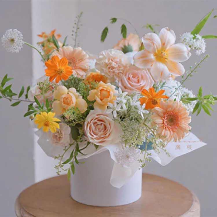 వివిడ్ కలర్స్: హగ్ బకెట్ డిజైన్ శక్తివంతమైన మరియు ప్రకాశవంతమైన రంగులను కలిగి ఉంటుంది. తెలుపు, గులాబీ మరియు పసుపు యొక్క క్లాసిక్ కలయిక బలమైన దృశ్య ప్రభావాన్ని సృష్టిస్తుంది; గులాబీ, పసుపు, ఎరుపు, ఆకుపచ్చ మరియు ఇతర రంగులు కూడా వెచ్చని మరియు శృంగార వాతావరణాన్ని సృష్టిస్తాయి. ఈ రంగులు ప్రజల దృష్టిని ఆకర్షించడమే కాకుండా శృంగార వాతావరణాన్ని కూడా సృష్టిస్తాయి.