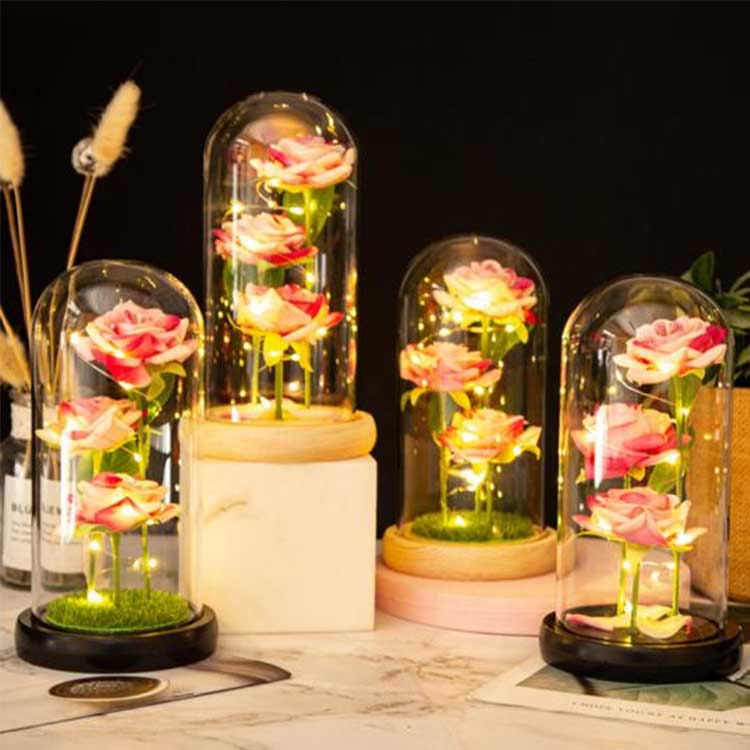 రోజ్ గ్లాస్ డోమ్ అనేది శృంగార వాతావరణాన్ని సృష్టించగల అలంకార వస్తువు. ఇది ఫర్నిచర్ అలంకరణగా ఉపయోగించవచ్చు, డెస్క్టాప్పై లేదా ప్రవేశ మార్గంలో ఉంచబడుతుంది, అలా చేయడం సురక్షితంగా ఉంటే; వార్షికోత్సవాలు, వాలెంటైన్స్ డే, పుట్టినరోజులు లేదా స్మారక చిహ్నం వంటి సందర్భాలలో దానిని బహుమతిగా ఇవ్వవచ్చు; మరియు శక్తిని జోడించడానికి కార్యాలయంలో కూడా ఉంచవచ్చు.