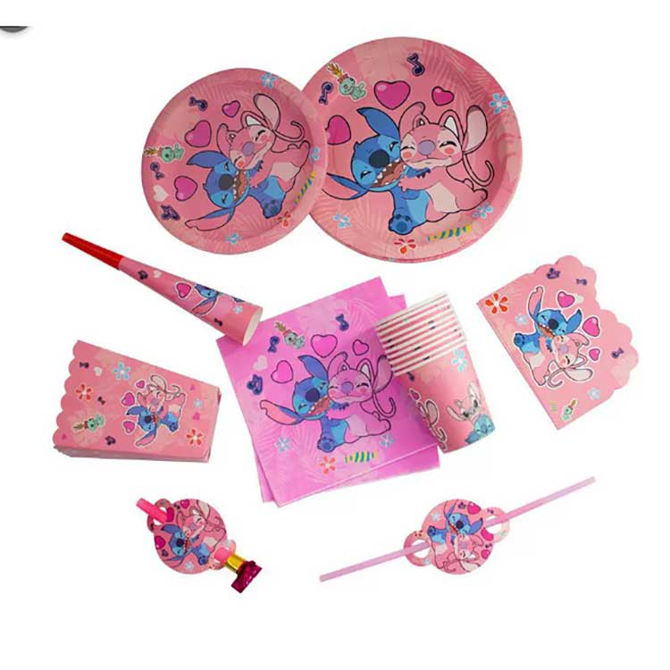 స్టిచ్ డిస్పోజబుల్ ప్లేట్ సెట్లో కింది ఉత్పత్తులు ఉంటాయి: 7-అంగుళాల ప్లేట్లు (10pcs/బ్యాగ్), 9-అంగుళాల ప్లేట్లు (10pcs/బ్యాగ్), న్యాప్కిన్లు (20pcs/బ్యాగ్), పెన్నెంట్లు (10pcs/బ్యాగ్), రిటర్న్ గిఫ్ట్ బ్యాగ్లు (10pcs/bag), పాప్కార్న్ బ్లోయింగ్ బాక్స్లు (6pcs/bags) (6 పీసీలు/బ్యాగ్), పేపర్ టోపీలు (6 పీసీలు/బ్యాగ్), పేపర్ కప్పులు (10 పీసీలు/బ్యాగ్), కొమ్ములు (6 పీసీలు/బ్యాగ్), స్ట్రాస్ (10 పీసీలు/బ్యాగ్), ఆహ్వాన కార్డులు (10 పీసీలు/బ్యాగ్), మాస్క్లు (10 పీసీలు/బ్యాగ్), స్పూన్లు, టేబుల్క్లారీ/1 పీజీ/10 పీజీలు. సెట్లో 17 రకాల ఉత్పత్తి రకాలు ఉన్నాయి. కస్టమర్లు మొత్తం సెట్ను కొనుగోలు చేయడానికి ఎంచుకోవచ్చు లేదా వారి అవసరాలను తీర్చడానికి వస్తువులలో కొంత భాగాన్ని మాత్రమే ఎంచుకోవచ్చు.